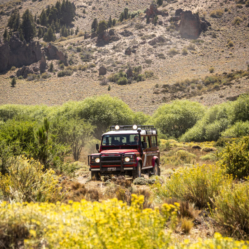 Aventura en la estepa patagónica con travesía en 4×4 Land Rover, paradas interpretativas y conexión con la naturaleza. Incluye desayuno criollo y almuerzo campestre en estancia.